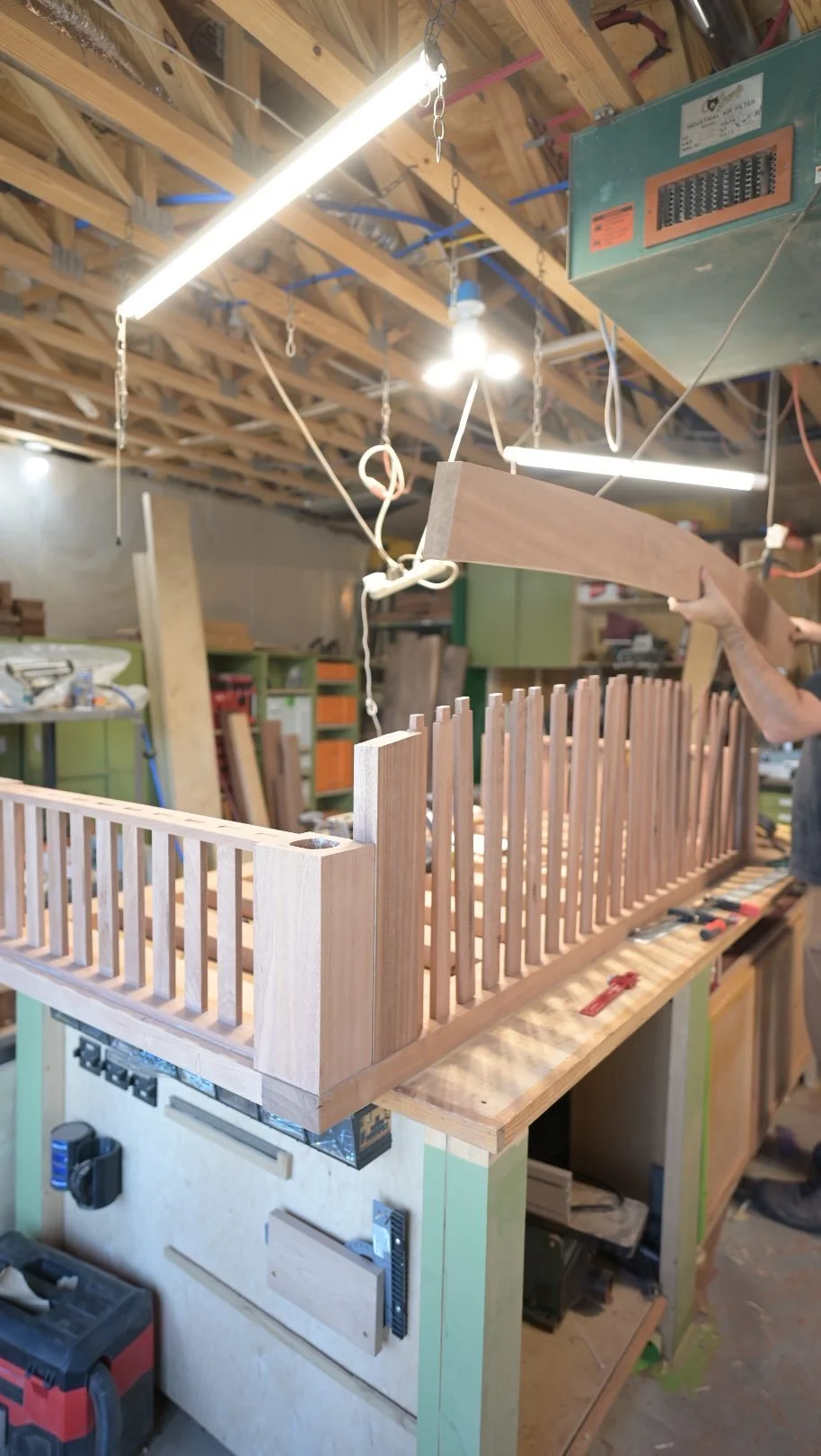We recently went back to this home and added the landing posts, stair railings, and the angled Chippendale railings we built on site!