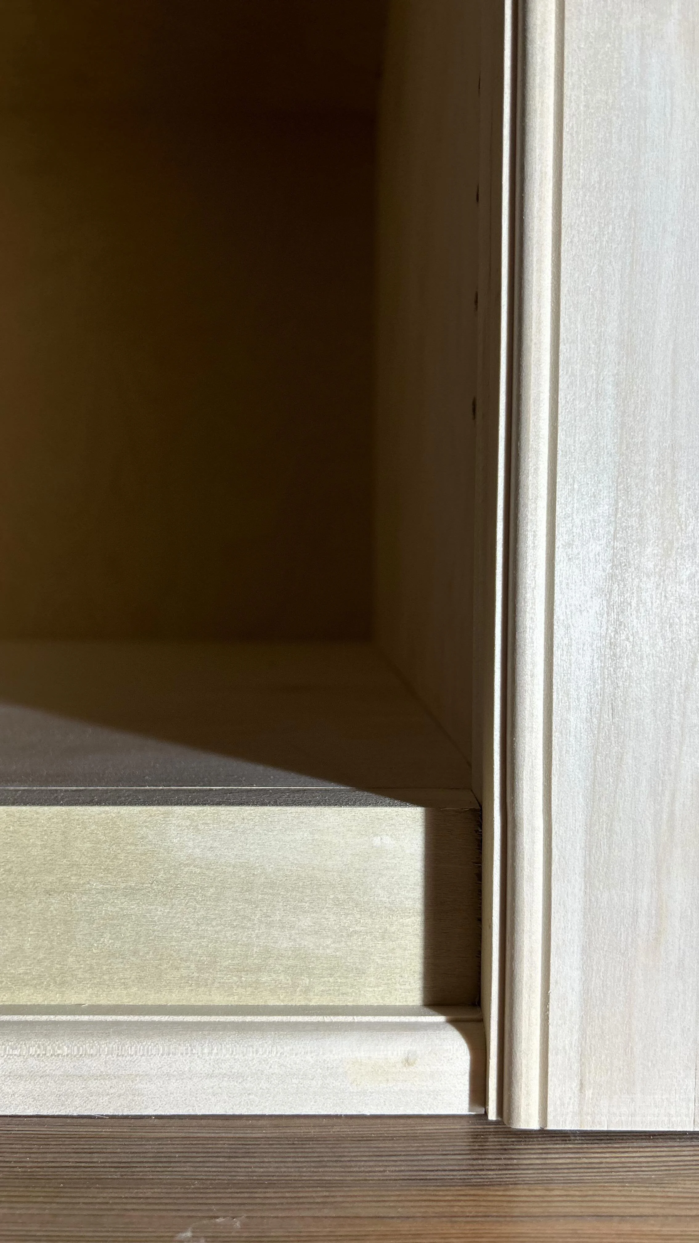 A solid walnut pantry top. This was cut to create a 1.5" thick countertop, and scribed into place for a perfect fit.