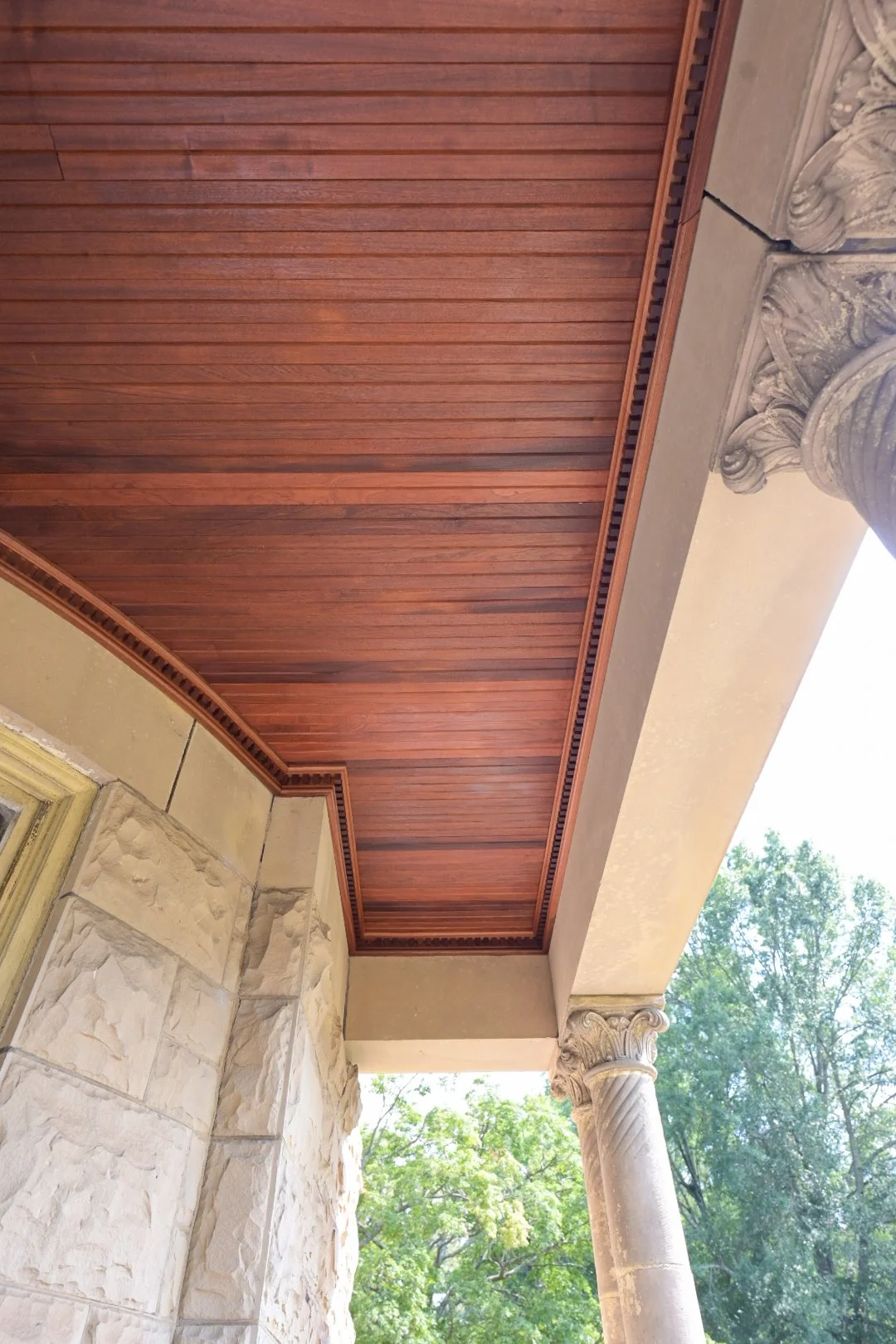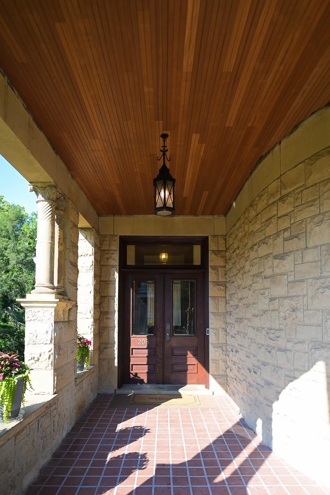 The previous tongue and groove ceiling installed, and a front door/entryway restoration project we completed.